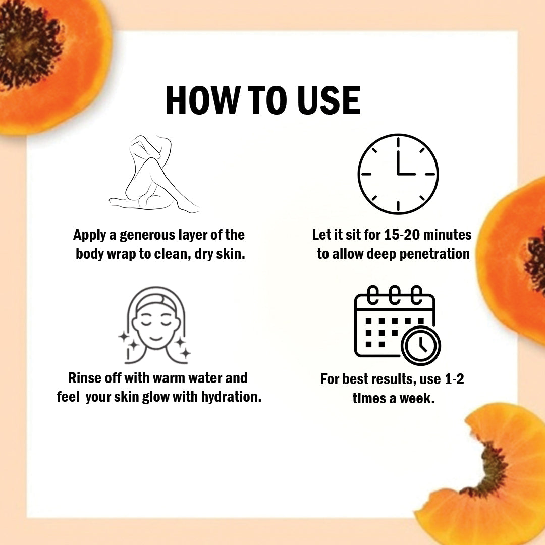 - After cleansing apply a thin layer of Papaya peach mask of the body and leave it undisturbed for 5-7 minutes.