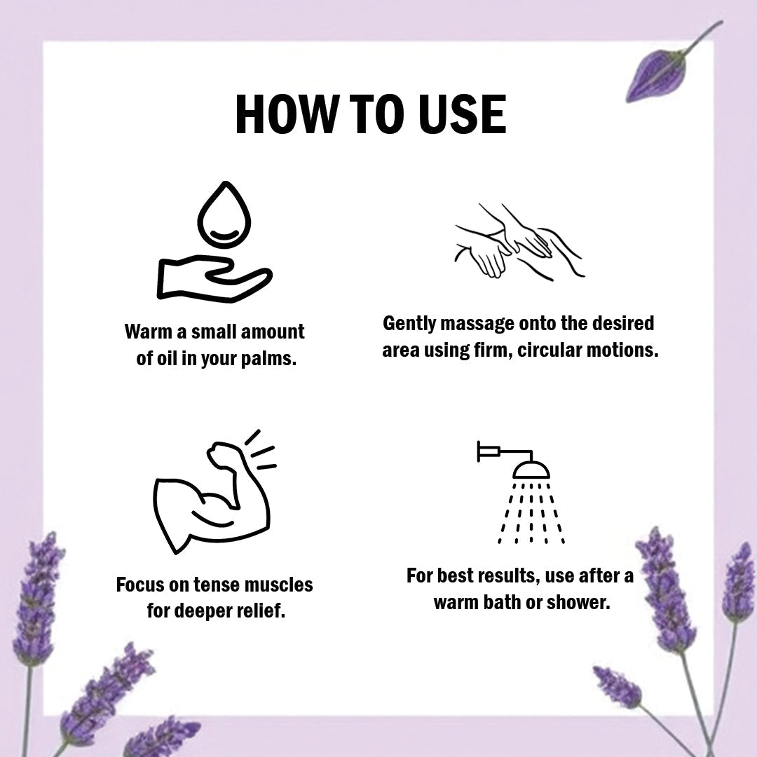 - Direction for use: warm oil and massage all over body using gentle yet firm strokes, leave it on preferably for an hour before bath for maximum absorption of nutrients.